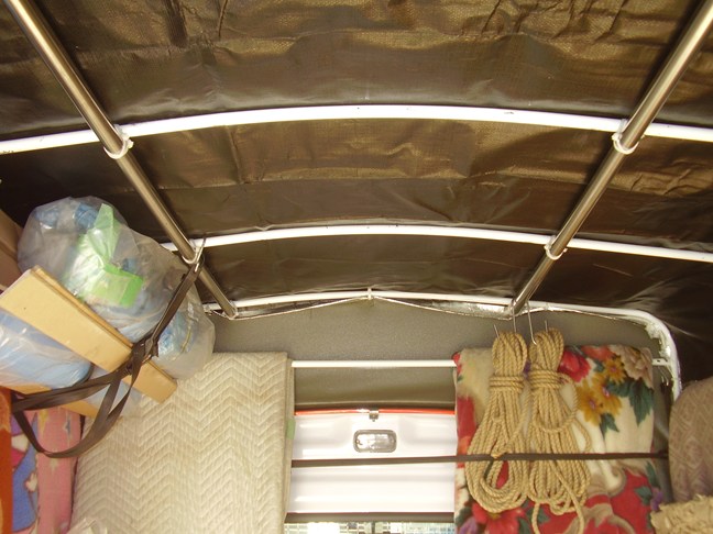 富士シートさんに無理をお願いして、シートと骨組みの間に保護の意味も含めて断熱シートを挟み込んでいます。