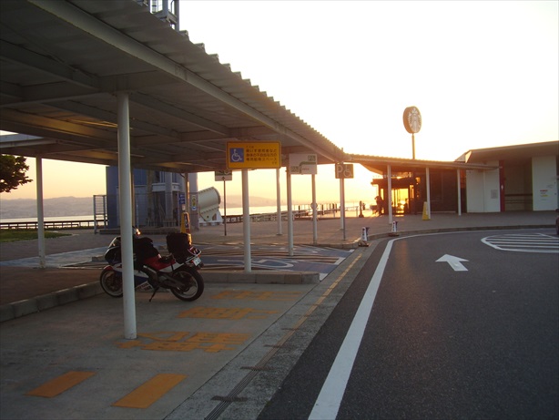 AM8:00搬入前の淡路島サービスエリアにての休憩タイム。