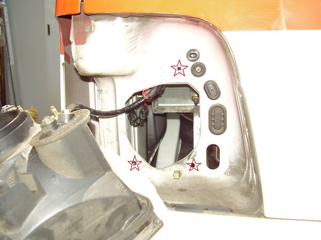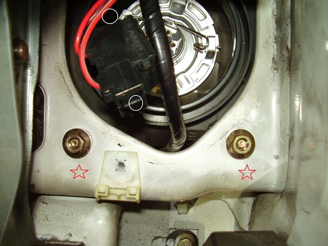☆部分2か所と隠れていますが上に1か所、計3か所ボルトでヘッドランプアッシーが固定されています。