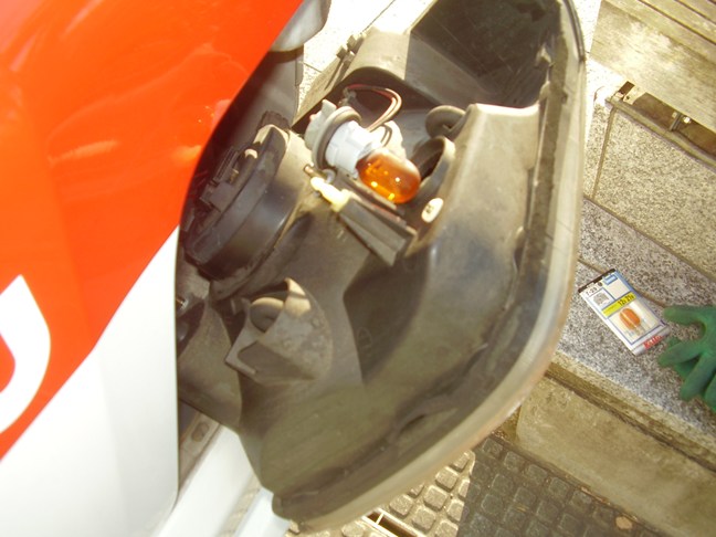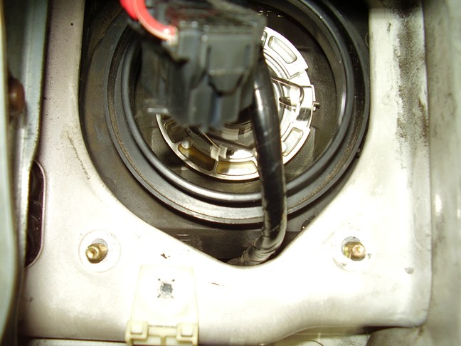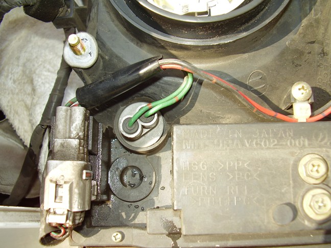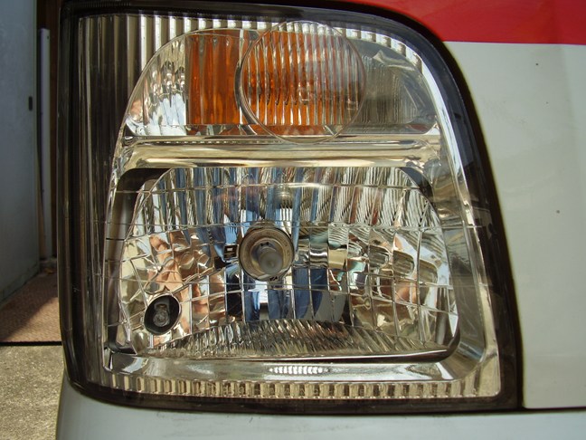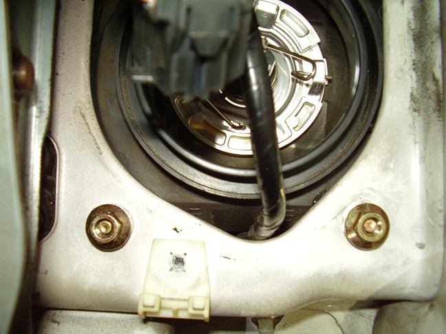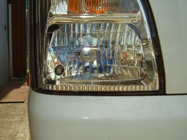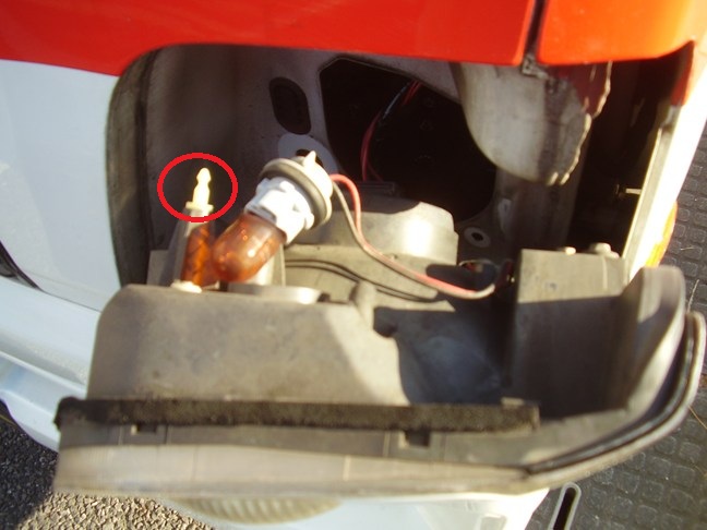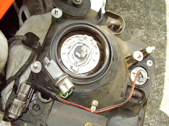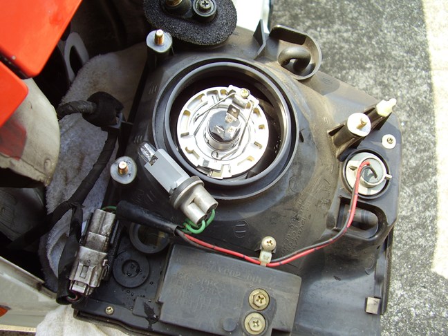 プラスチックカバー及びヘッドランプコネクターとゴムキャップをはずした状態です。